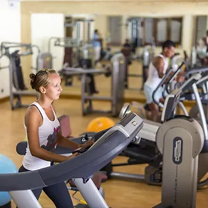 Es gibt ein Fitnesscenter mit einem breiten Sportangebot.